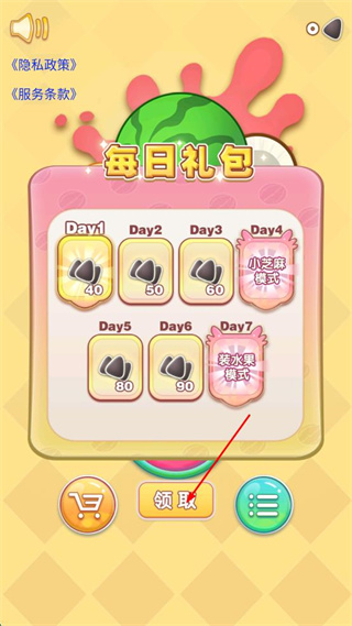 1、在每日礼包界面点击领取按钮,获取当日对应的道具奖励,为游戏做准备。