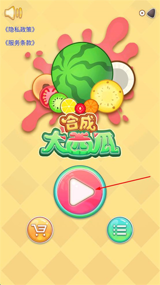 2、领取奖励后进入游戏主界面,点击粉色的播放按钮,进入合成大西瓜的游戏场景。