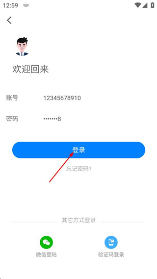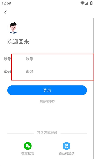 3、在登录界面的对应输入框,依次填写账号和对应的登录密码信息。