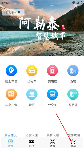 1、进入阿勒泰智慧城市软件首页,点击底部导航栏的我的选项进入个人页面。