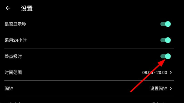 3、找到整点报时选项,点击开关按钮,即可关闭整点播放。