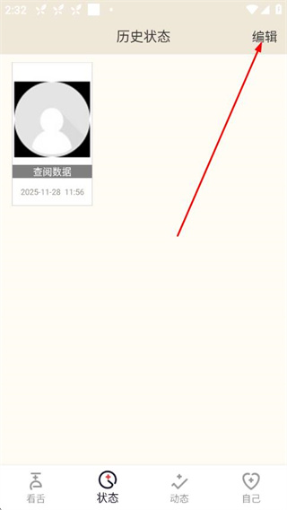 2、 在状态页面点击右上角的“编辑”按钮,进入记录编辑模式。