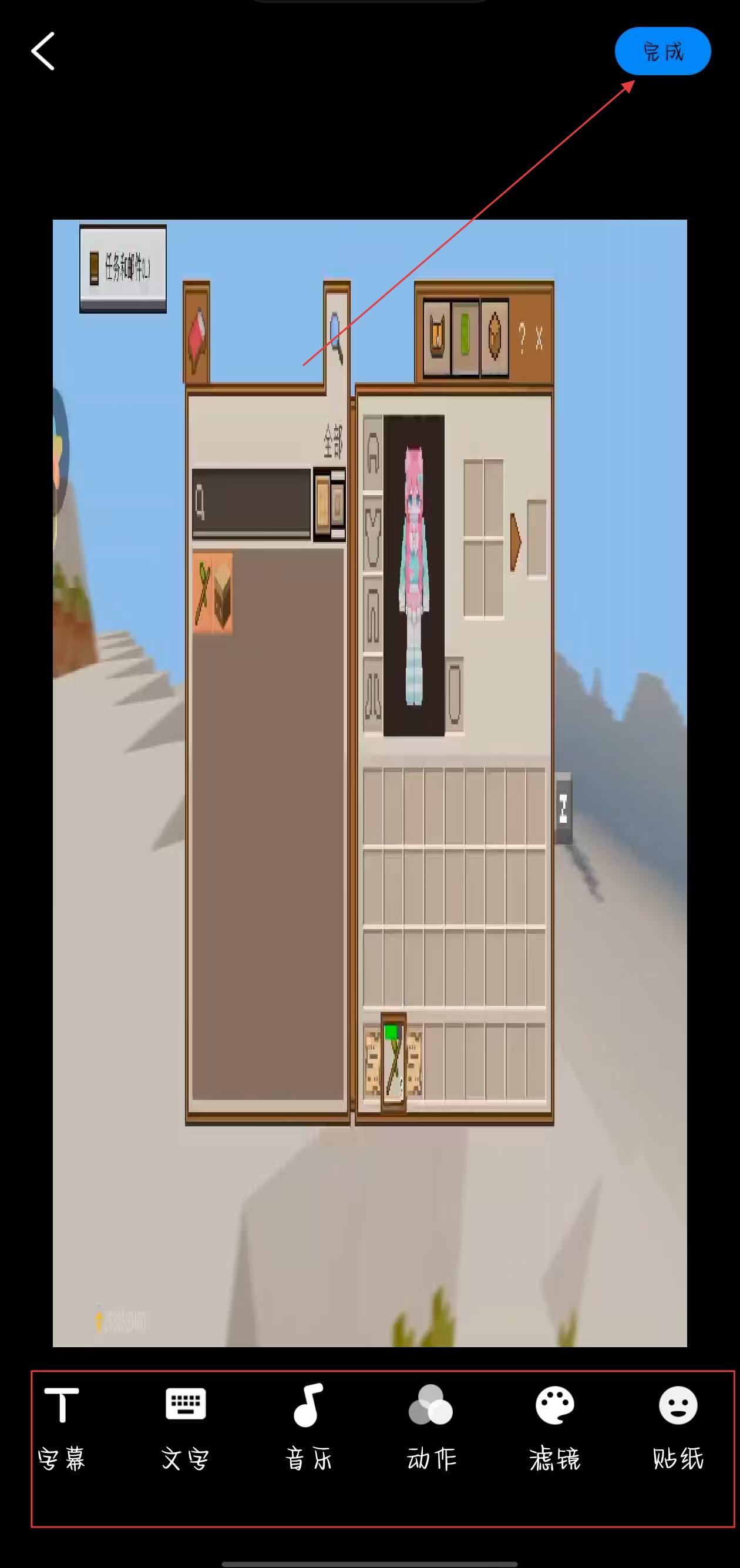 4、在最终编辑界面,可使用底部工具为视频添加效果,全部设置好后点击右上角完成,即可保存。