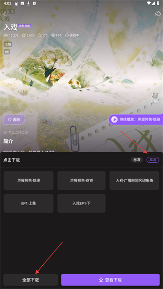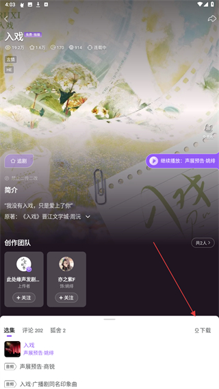 2、进入广播剧的详情页面内,点击右下方下载的按钮。