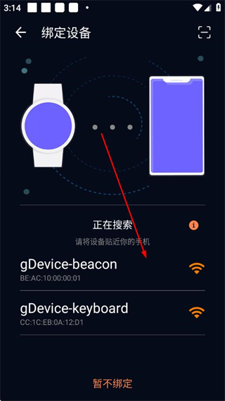3、在绑定设备页面,选择搜索到的目标设备,按照提示完成绑定操作。