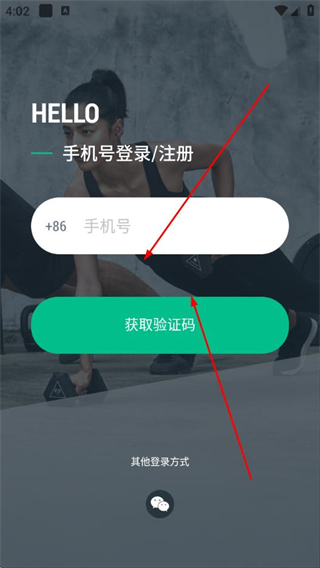 2、在手机号登录/注册页面填写手机号,点击获取验证码,获取短信验证码。