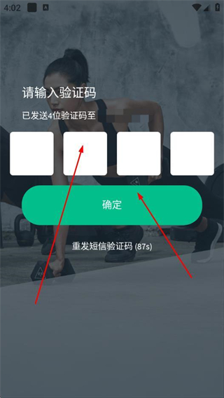 3、在验证码输入页面填入收到的4位验证码,点击确定完成账号注册。