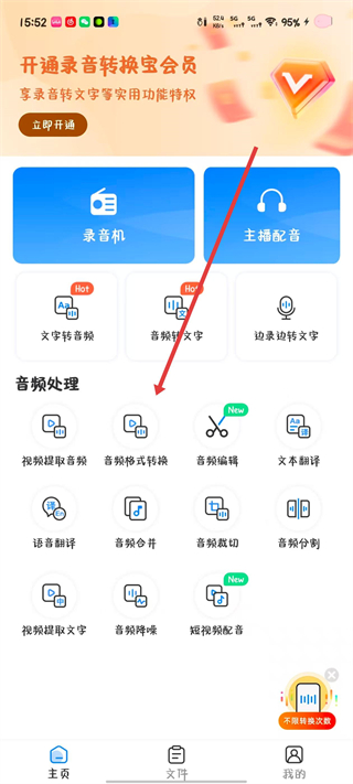 1、打开录音转换宝,点击音频格式转换。