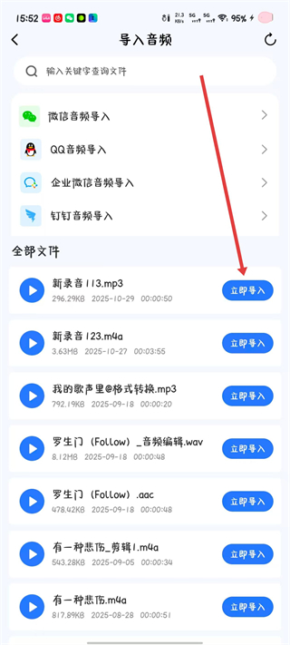 3、选择目标音频并点击对应的立即导入按钮。