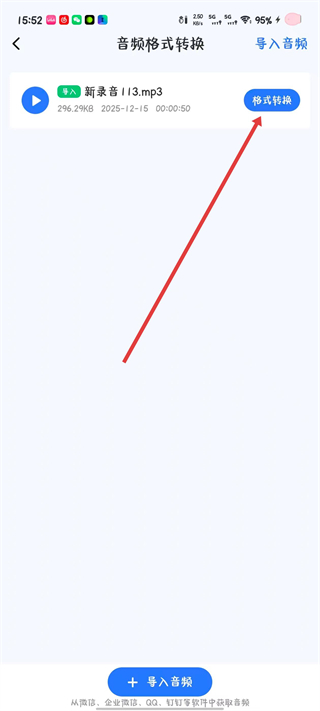 4、在音频格式转换页面后,点击格式转换。