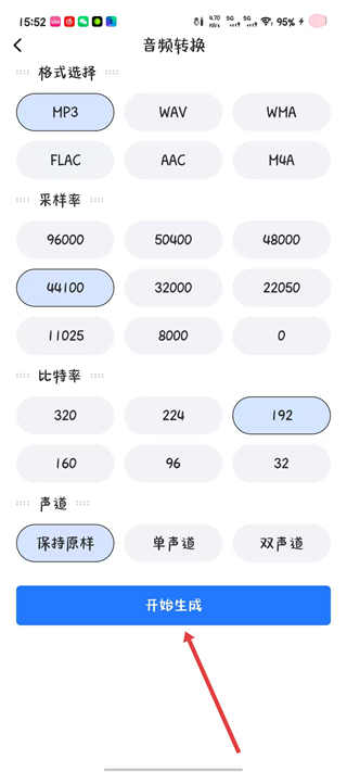 5、选择所需格式参数之后,点击开始生成。