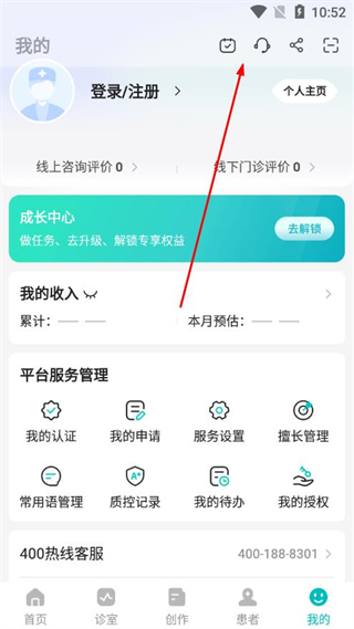 2、进入我的页面后,点击右上角的耳机形状客服图标。
