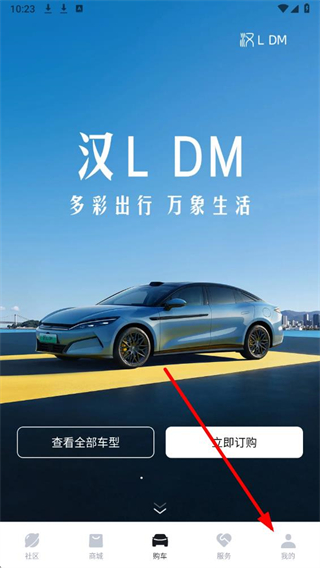 1、在比亚迪首页界面,点击底部我的选项,进入个人页面。