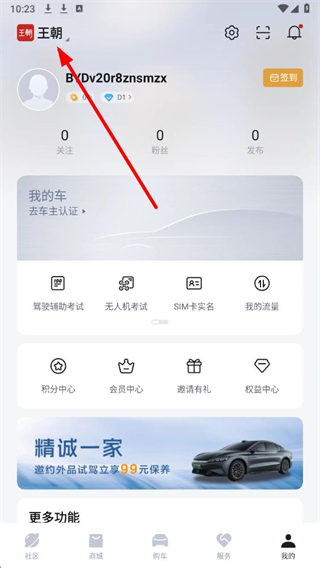 2、在个人页面中,点击左上角的王朝区域,唤起品牌切换的选择菜单。