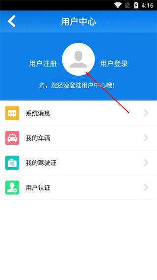 2、在用户中心页面中,找到用户登录选项,点击该选项进入软件的登录界面。