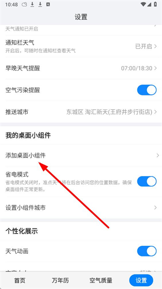 2、在设置页面中,找到添加桌面小组件选项,点击进入小组件添加教程页面。