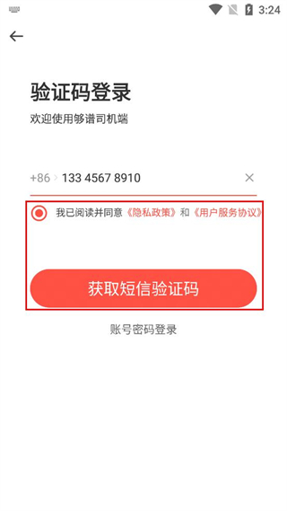 4、勾选我已阅读并同意相关协议,点击获取短信验证码按钮推进登录流程。
