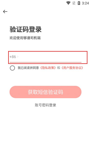 3、进入验证码登录页面,在对应输入框中填写手机号码,准备后续验证。