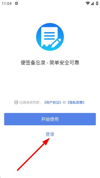 1、打开便签备忘录app,在初始页面点击登录选项。