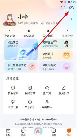 2、在该页面中,找到右上角的设置选项并点击,进入设置界面。