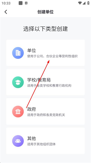 2、在弹出的选择框中,选择创建企业/学校选项。
