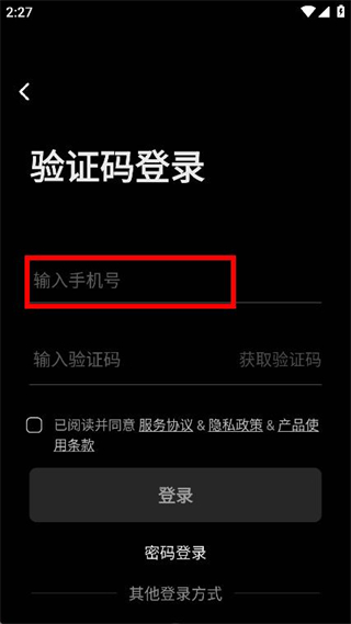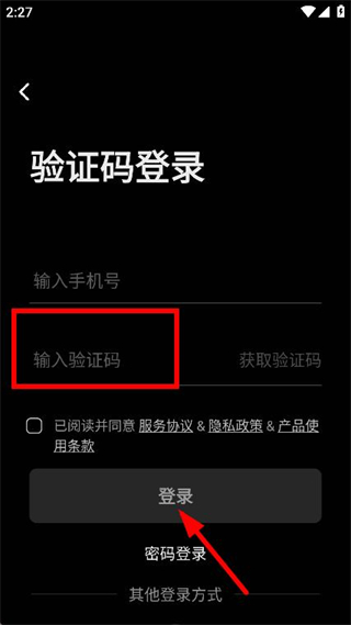 3、进入验证码登录页面,填写手机号并获取验证码。