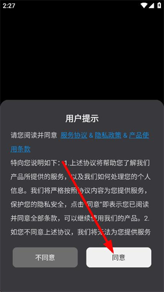 1、打开户外电源App,在弹出的提示弹窗中点击同意。