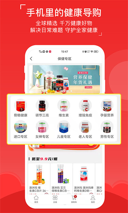 八客网上商城是一款网上购物的app,软件主要经营的是食品、化妆、药物和医械类的商品,种类多种多样,骨骼健康、进口类、儿童类、维生素、调节三高、女神类、老人类以及男性类等涵盖了生活中的方方面面,各种保健品极其药物均是正版药品,有商家的防伪证明,可以放心购买。