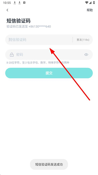 3、在短信验证码页面,输入收到的验证码,设置密码,最后点击提交,即可完成云智连账号注册。