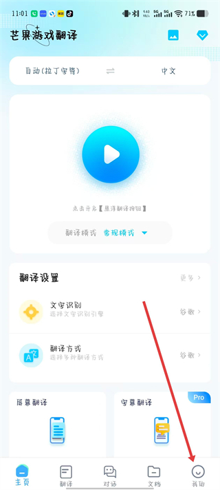 1、打开芒果游戏翻译应用,点击导航栏的我的选项。