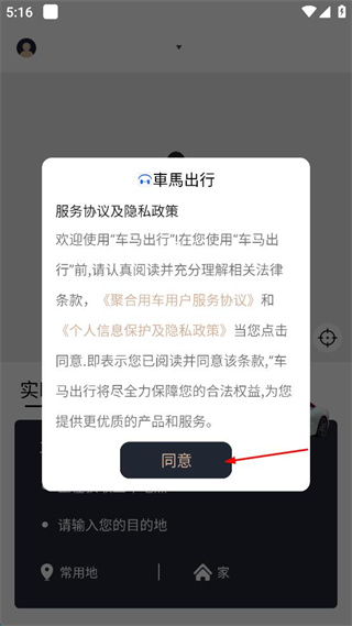 1、打开查看弹出的服务协议及隐私政策,点击同意按钮进入主界面。