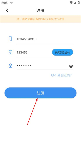 3、确认注册页面的手机号码、验证码、密码均已填写正确,找到页面下方的注册按钮,点击该按钮完成注册操作。