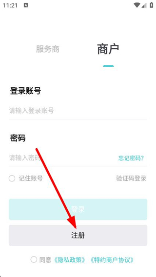 1、打开乐epay,在商户登录页面,找到并点击注册按钮。