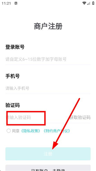 3、填写收到的短信验证码,点击注册按钮完成注册操作。
