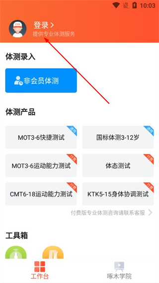 1、在啄木鸟Pro的工作台页面,点击顶部的登录选项。