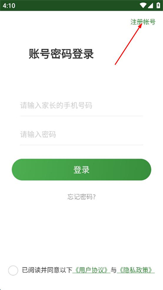 2、在登录页面找到右上角注册帐号选项,点击后跳转至注册新帐号界面。
