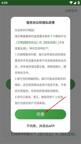 1、打开软件,出现服务协议和隐私政策弹窗,点击同意按钮进入登录页面。