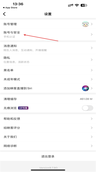 2、在设置页面中找到账号与安全选项并点击,该选项涉及手机认证、设备管理等账号安全相关设置。