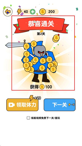 4、通关第2关后,在结算界面可点击“下一关”按钮,进入后续关卡挑战。