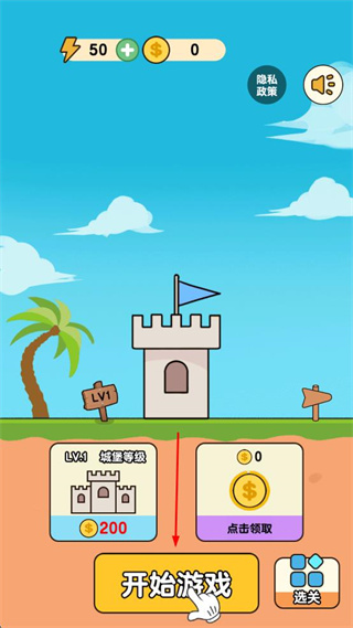 1、在游戏主界面,点击“开始游戏”按钮,进入第1关的对战场景。