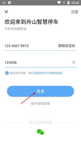 4、将收到的验证码填入对应输入框,确认条款已勾选后点击登录按钮完成操作。