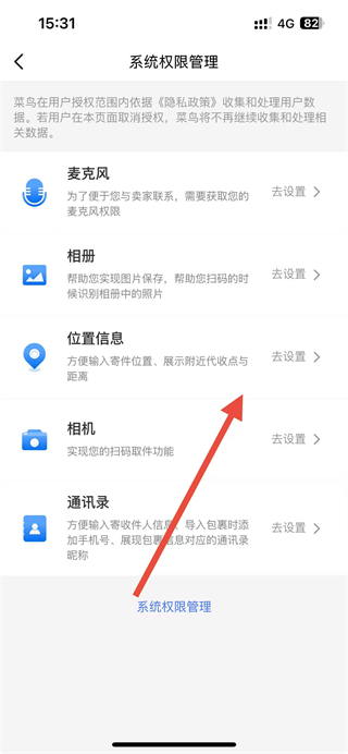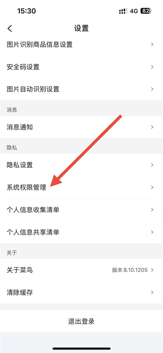 3、在设置界面,找到系统权限管理选项并点击,进入系统权限的管理页面。