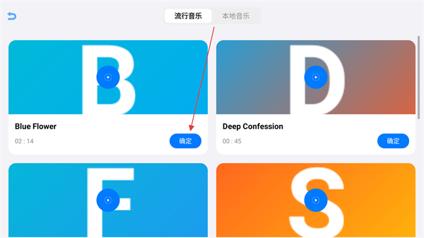 4、在音乐界面选择目标音乐,点击对应的确定按钮即可开始播放。