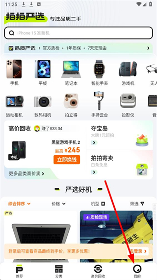 1、进入拍拍严选主界面后,点击底部我的选项,进入个人相关页面。