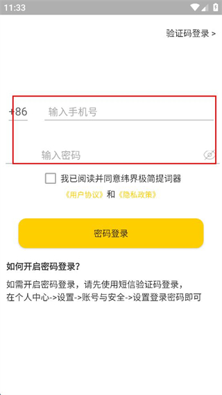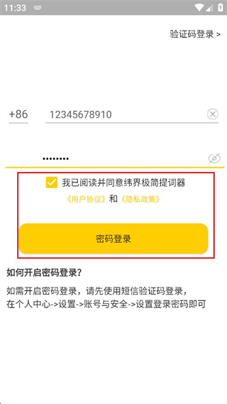 4、勾选已阅读并同意相关协议的选项,点击密码登录按钮完成登录流程。