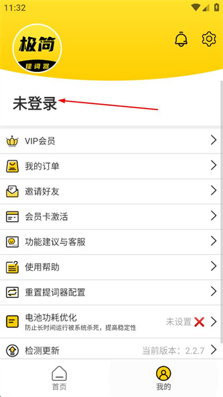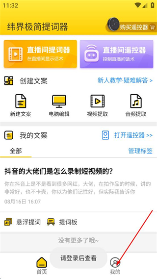 1、打开纬界极简提词器应用,点击界面底部的我的选项,进入个人中心页面。