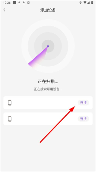 4、待页面扫描出可用设备后,点击对应设备右侧的连接按钮,即可通过蓝牙完成设备绑定。