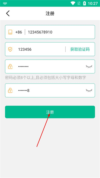 4、再次输入密码确认,确认信息填写完整后,点击注册按钮完成账号注册操作。