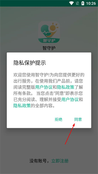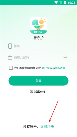 1、进入智守护登录界面,找到没有账号立即注册选项,点击该选项进入注册流程。