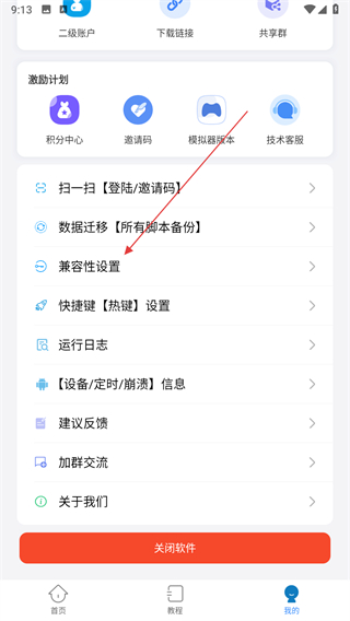 2、在个人页面找到兼容性设置选项,点击进入兼容性设置页面。
